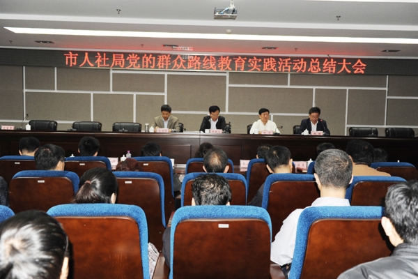 李静波同志在总结讲话中指出,党的群众路线教育实践活动开展以来,市人社局在市委、市政府的统一部署下,在市委第十四督导组的具体指导帮助下,按照“照镜 子、正衣冠、洗洗澡、治治病”的总要求,紧密围绕为民务实清廉的主要内容,聚焦“四风”突出问题,扎扎实实完成了各个环节的工作任务,教育实践活动取得了 明显成效。一是注重学习先行,筑牢思想基础,党员干部宗旨意识和群众观念明显增强;二是坚持开门搞活动,广泛听取意见,“四风”问题得到有效遏制;三是坚 持问题导向,动真碰硬开展批评与自我批评,党内政治生活更加严肃了;四是强化立行立改,完善制度规定,为民务实清廉的良好形象得到了进一步提升;五是注重 督导指导,协调推进全局活动,解决了一批群众反映强烈的突出问题。