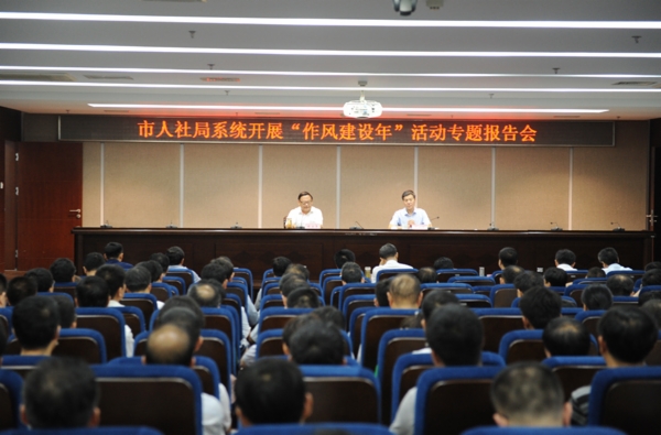 6月23日下午,市人社局系统“作风建设年”活动专题报告会在政务服务中心四楼1号会议室举行。市委组织部副部长、市干部网络培训管理办公室主任陈延爱作了题为《对锤炼作风创争一流的认识和体会》的报告,市政府党组成员,市人社局局长、党委书记陈汝孝主持会议并讲话。局机关全体人员、局属各单位中层以上干部参加了报告会。